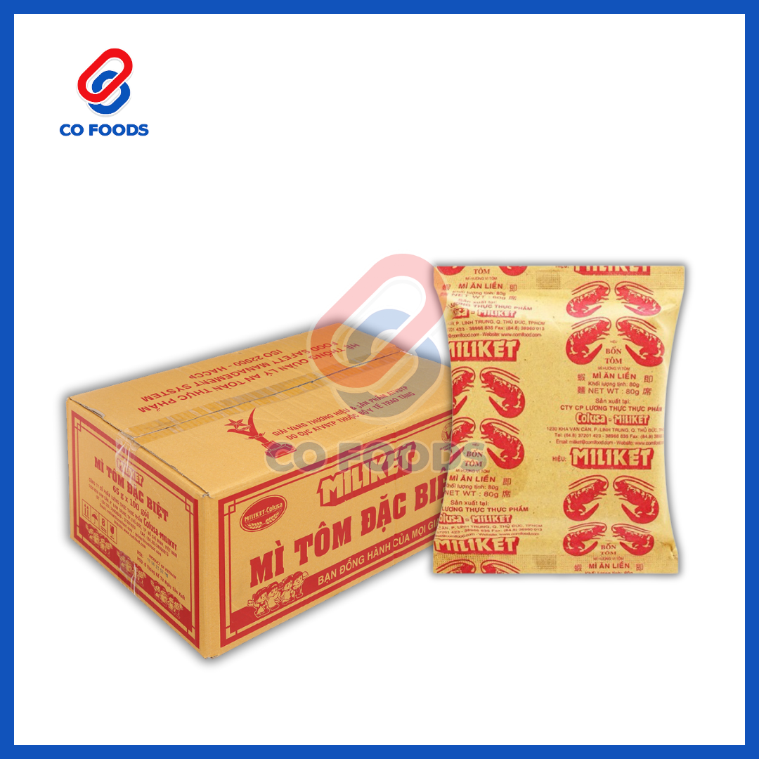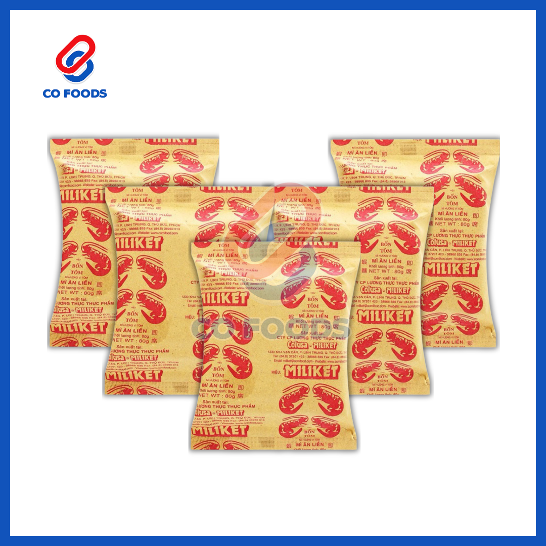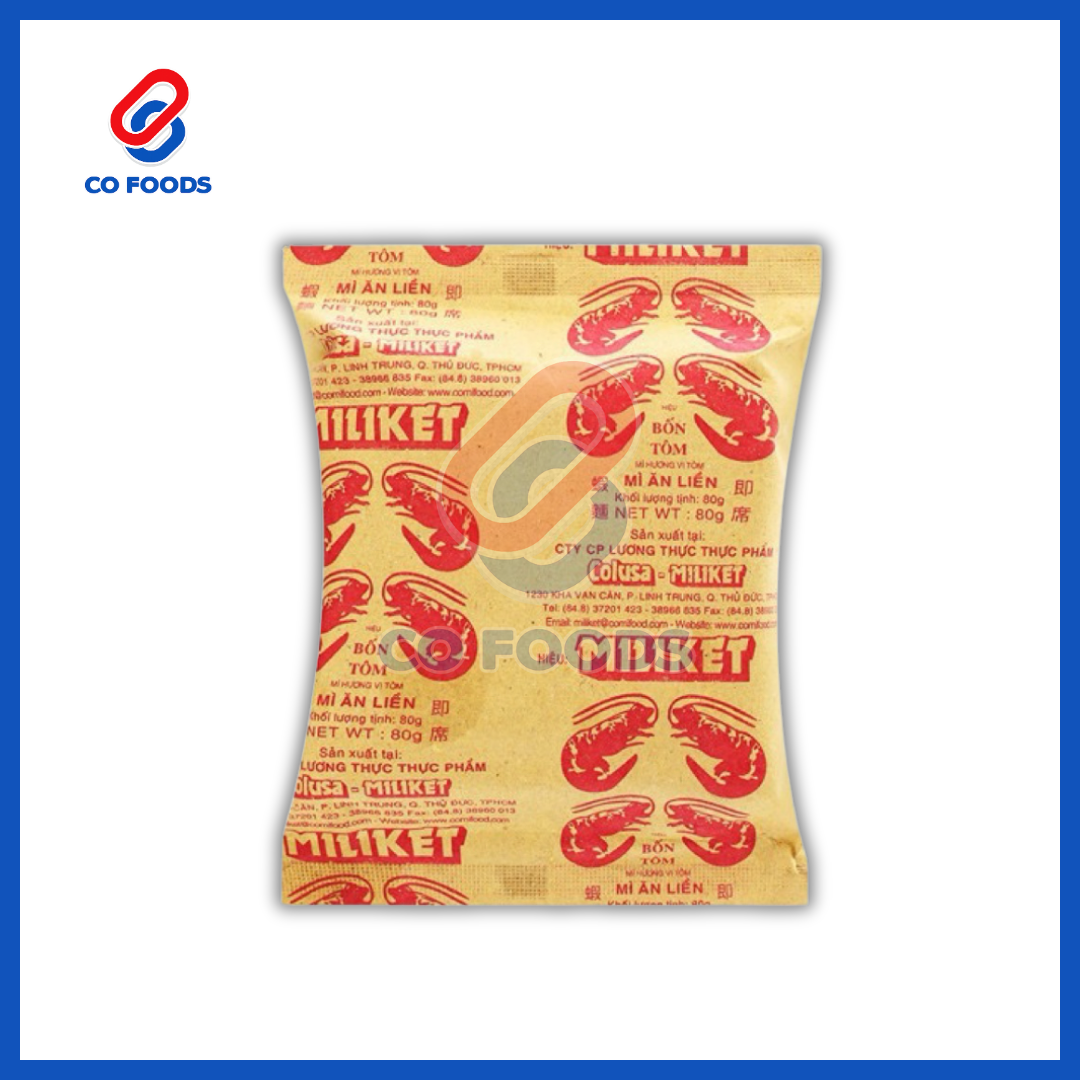 - Tên sản phẩm: Mì Tôm Miliket (Bốn Tôm Đỏ)