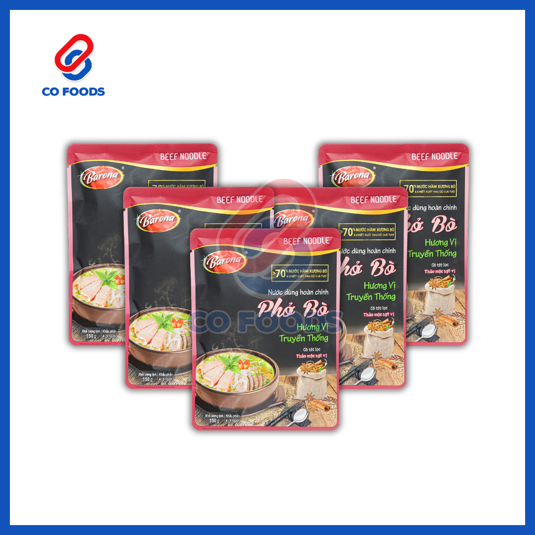 Nước dùng hoàn chỉnh Barona là dòng gia vị nấu sẵn tiện lợi, giúp người dùng nấu nhanh các món phở – lẩu truyền thống mà không cần hầm xương hay pha chế phức tạp.