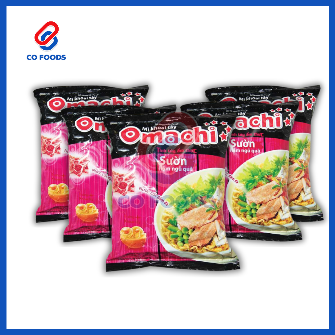 Omachi là dòng mì khoai tây cao cấp quen thuộc của người Việt, nổi bật với sợi mì dai mềm, nước cốt đậm đà và hương vị được nghiên cứu phù hợp khẩu vị số đông. Sản phẩm tiện lợi cho bữa ăn nhanh, dùng tại gia đình, văn phòng, quán ăn và kênh bán sỉ.