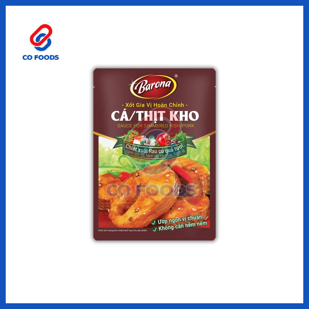 Xốt gia vị hoàn chỉnh Barona là dòng gia vị nêm sẵn tiện lợi, giúp người dùng chỉ cần ướp – nấu – hoàn thiện món ăn mà không cần pha chế thêm. Sản phẩm được nghiên cứu theo khẩu vị Việt, sử dụng chiết xuất từ rau củ quả tươi, mang lại hương vị đậm đà, ổn định và dễ sử dụng.